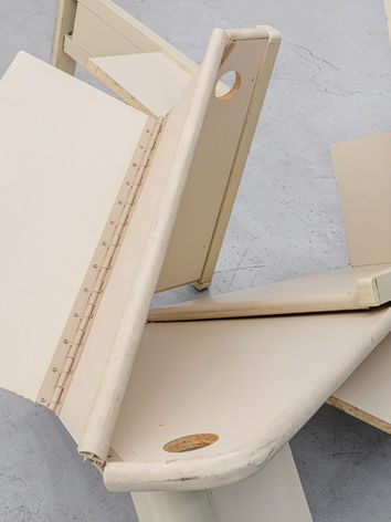 Tão fascinante quanto tensa, imaginar a performance de uma equilibrista evidencia a fragilidade humana contrapondo-se à mais densa concretude: a única certeza dessa narrativa é a solidez dos pontos de partida e de chegada: confiamos que os prédios não vão colapsar, que os alicerces vão garantir estabilidade e que sua estrutura seguirá imóvel. Toda imprevisibilidade, fraqueza ou possibilidade de erro é associada aos limites do corpo e da mente: o cálculo dos movimentos foi impreciso, os ensaios não se provaram suficientes, o tônus não suportou: foram as faculdades humanas as responsáveis pelo anticlímax. Os elementos envolvidos no feito épico de atravessar o vão livre nos servem como abstração para pensar as obras de Aline Setton e Érica Storer, artistas que manipulam cenas altamente racionais para alcançar uma deformação lírica e onírica da experiência visual. Para além da materialidade evidente que empregam — linhas tensionadas, materiais rígidos, cortes oblíquos e formas fragmentadas —, seus trabalhos são assentados em uma atmosfera embaralhada: seja através da pintura, da escultura, da instalação ou da performance, percebemos sempre um intento de d-e-s-o-r-i-e-n-t-a-ç-ã-o.